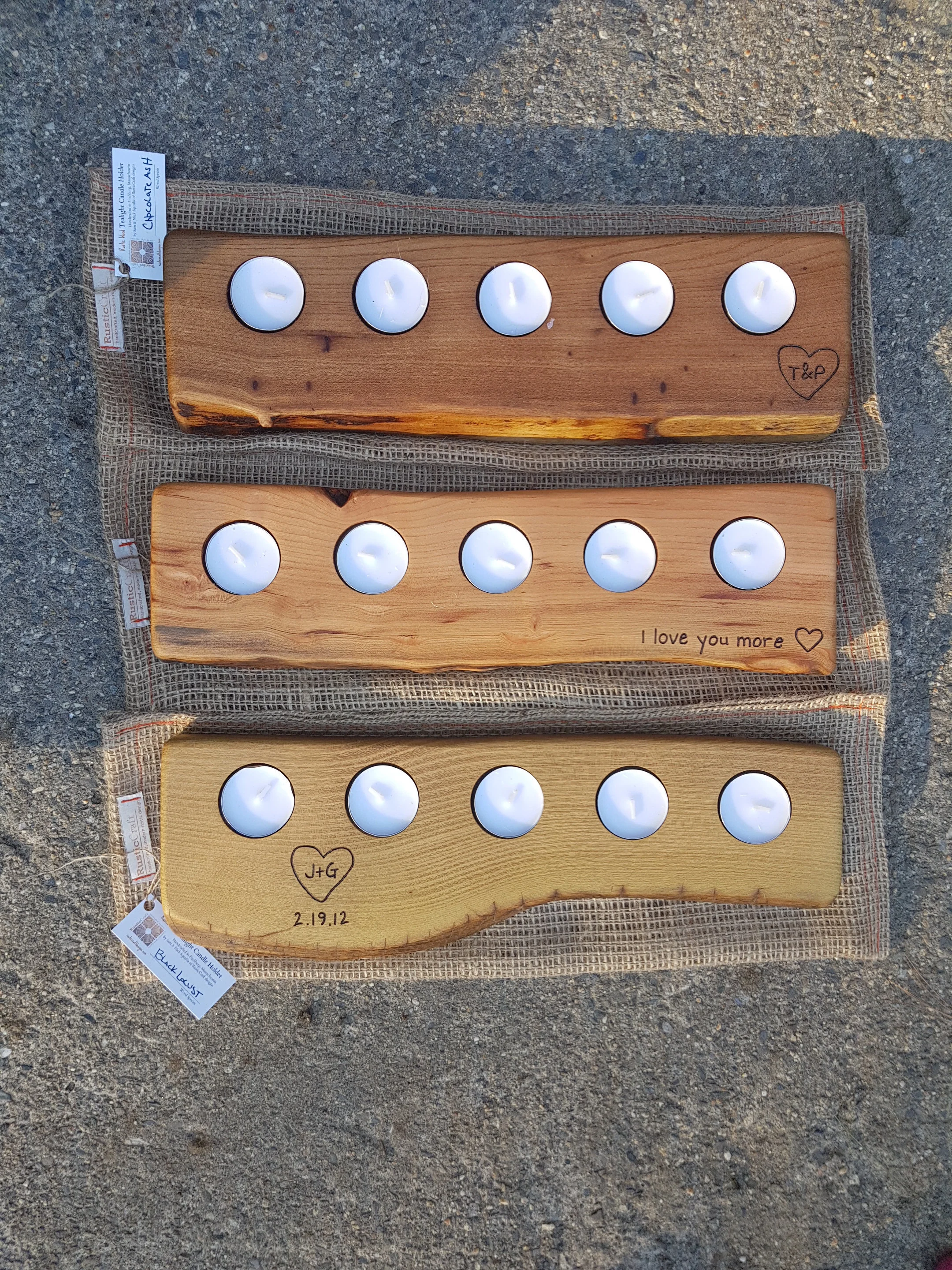 Personalized Tealight Wood Candleholder- Rustic Wood - Engraved - 3 tea light- Unique Wedding Gift - 5th Anniversary Wood Gift