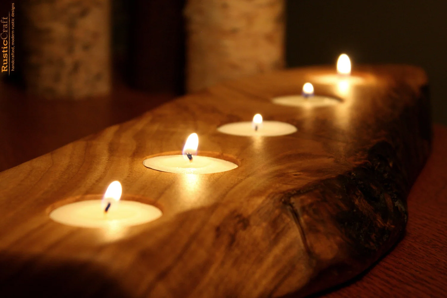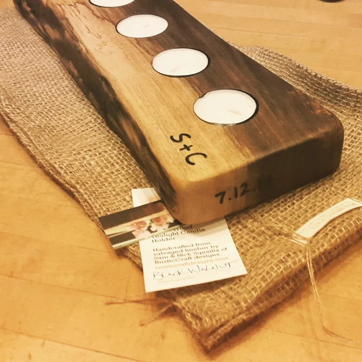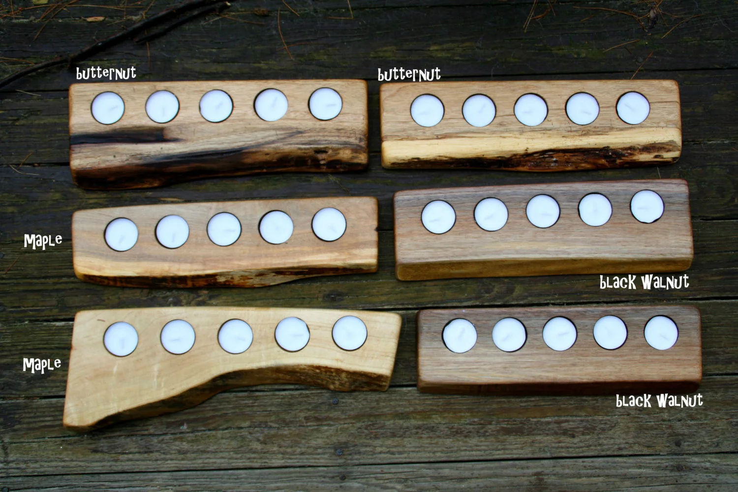 Handcrafted natural live edge wood tea light candle holder for a one of a kind unique gift that everyone can use, add a custom personalization to make it extra special.