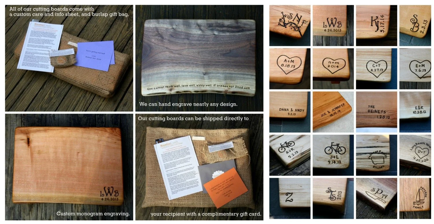 We custom design your included personalization and then engrave it on our handcrafted wood boards, making your gift truly one of a kind.