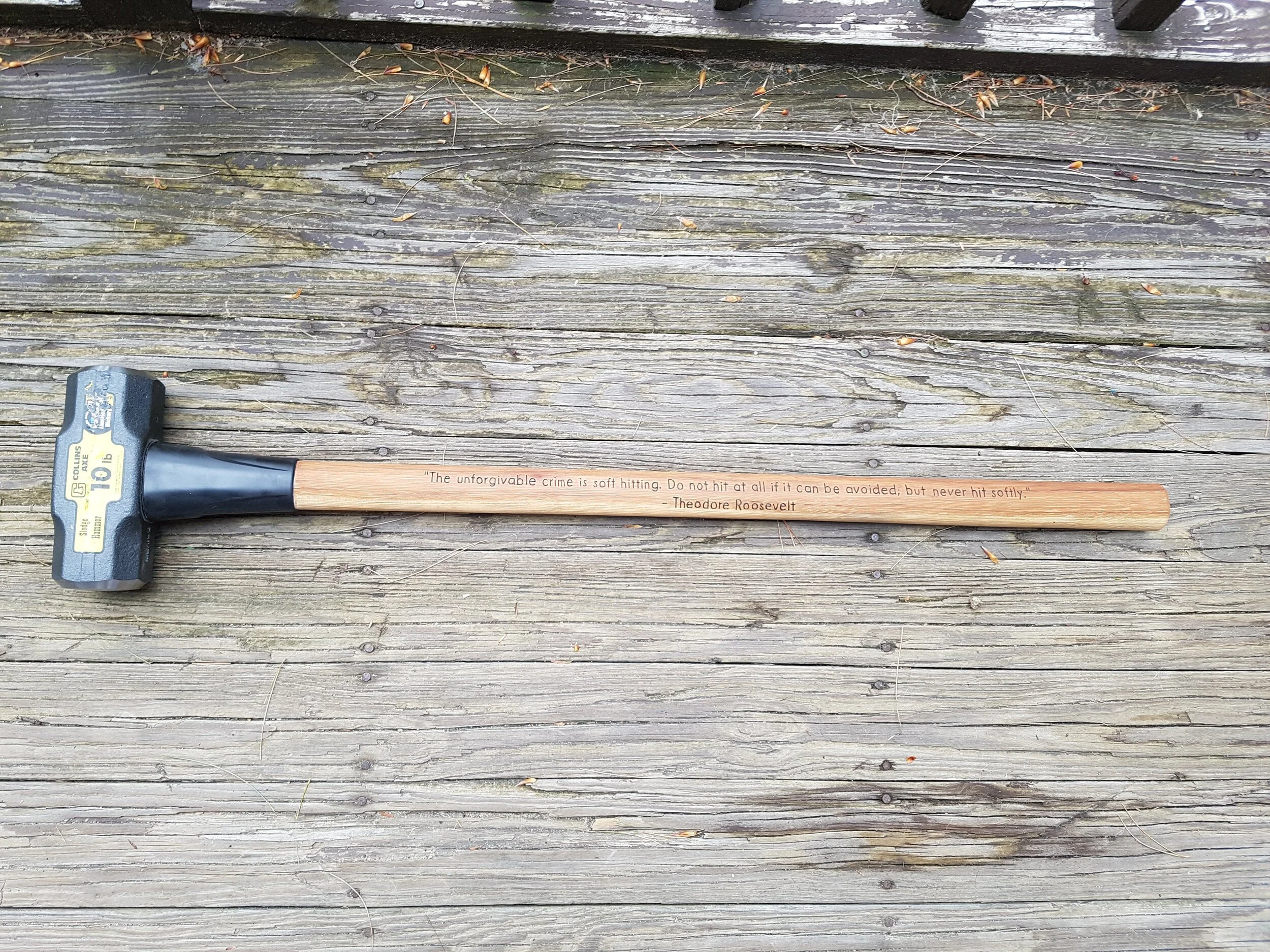 ◘Collins Axe® 6, 8, 10 or 12lb Sledge Hammer (or equivalent) with Hickory wood shaft; hand engraved and finished with a linseed oil finish.