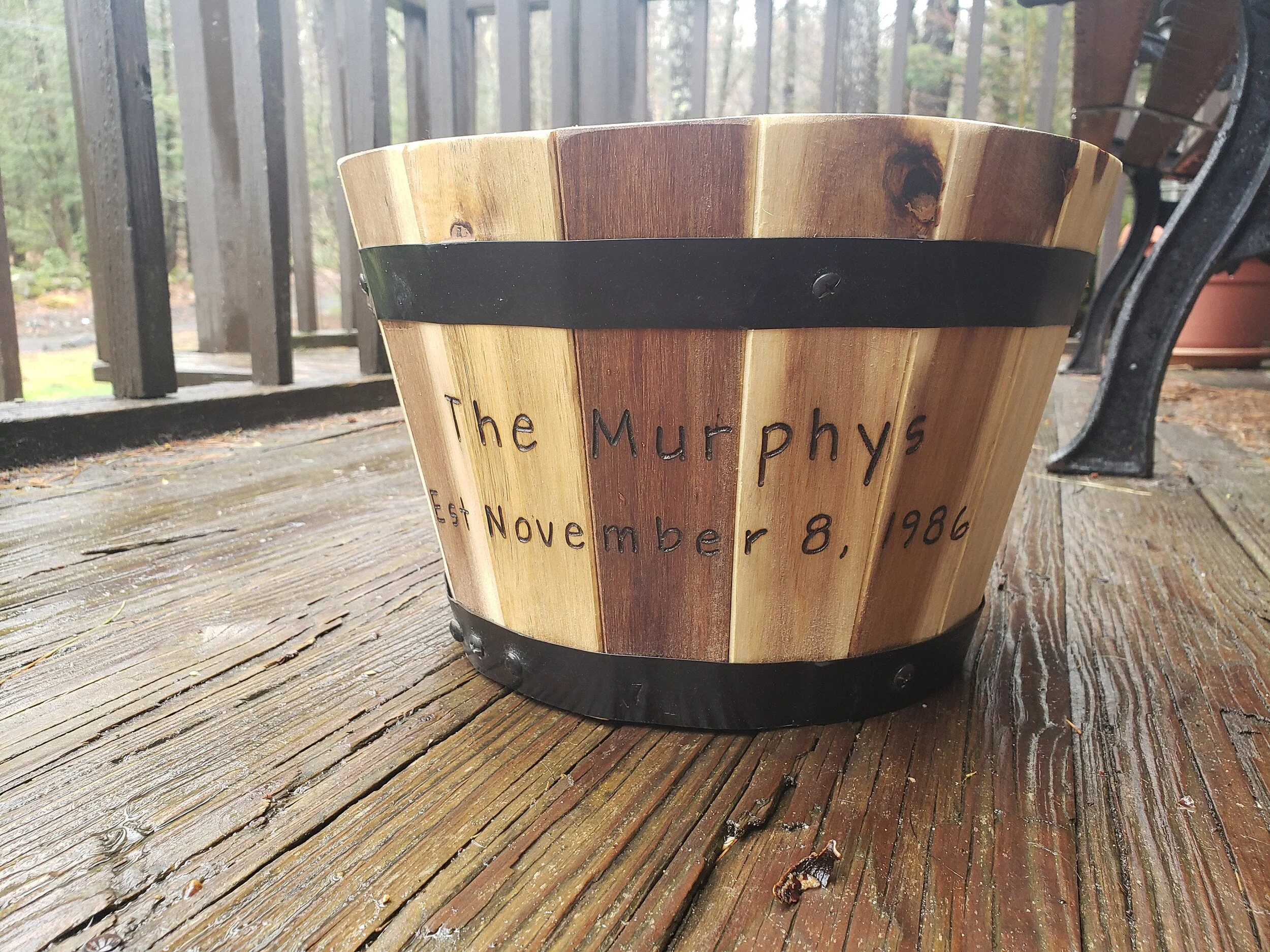 Personalized Wood Planter -Unique Gift for Mom - Round Natural wood planters with hand engraving