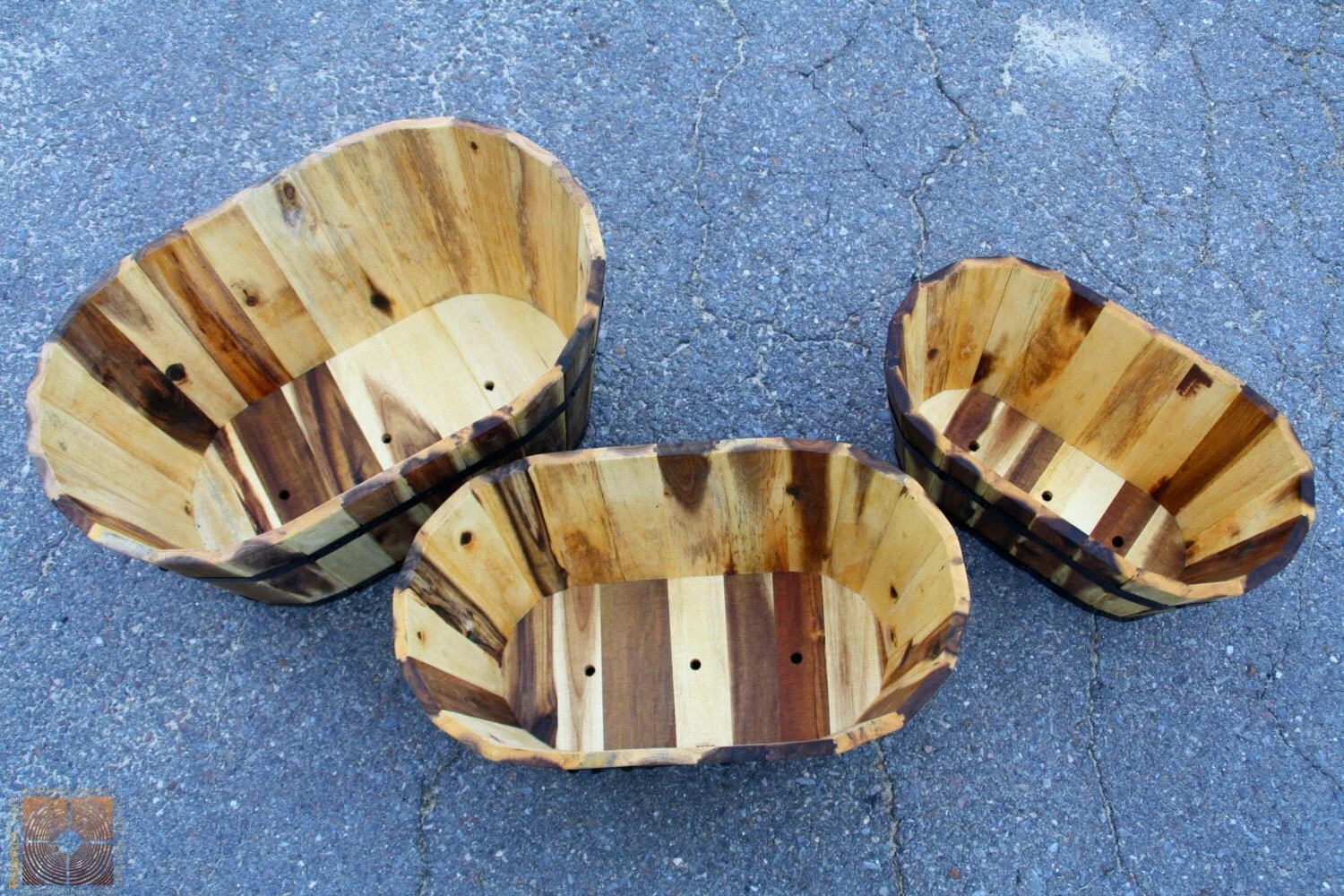 These natural Acacia hardwood planters come in 3 sizes, are heavy duty and high quality.