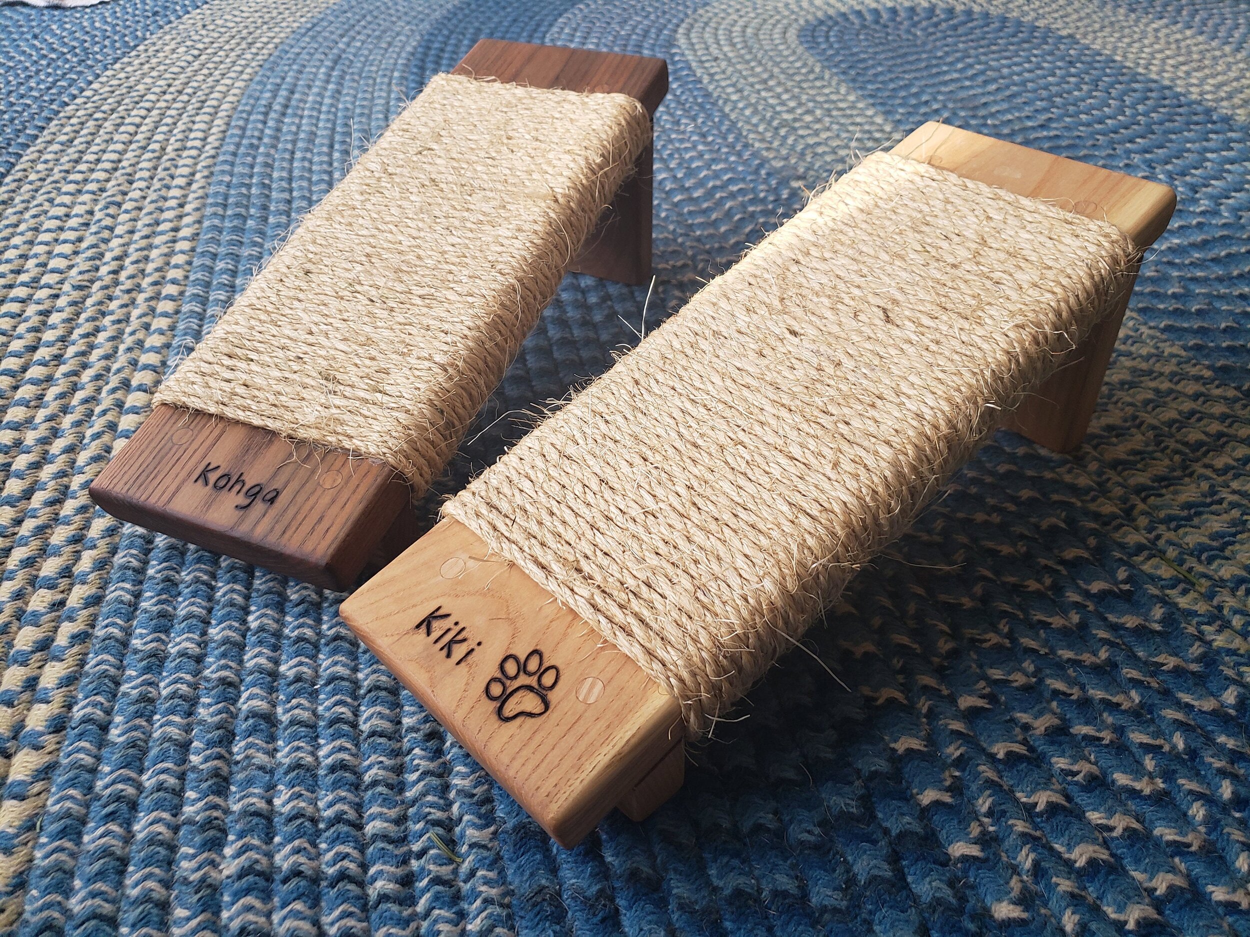 Did you know that 72% of cat owners purchase gifts for their cats? We know.... that's why we handcraft these awesome cat scratchers out of reclaimed wood and natural jute for our feline friends. Personalized with your cat (or cats) name...this is not only a great gift for cats---but for those servant humans of cats. Choose Handcrafted Cat Scratchers in multiple styles available with custom personalization included for your special kitty.