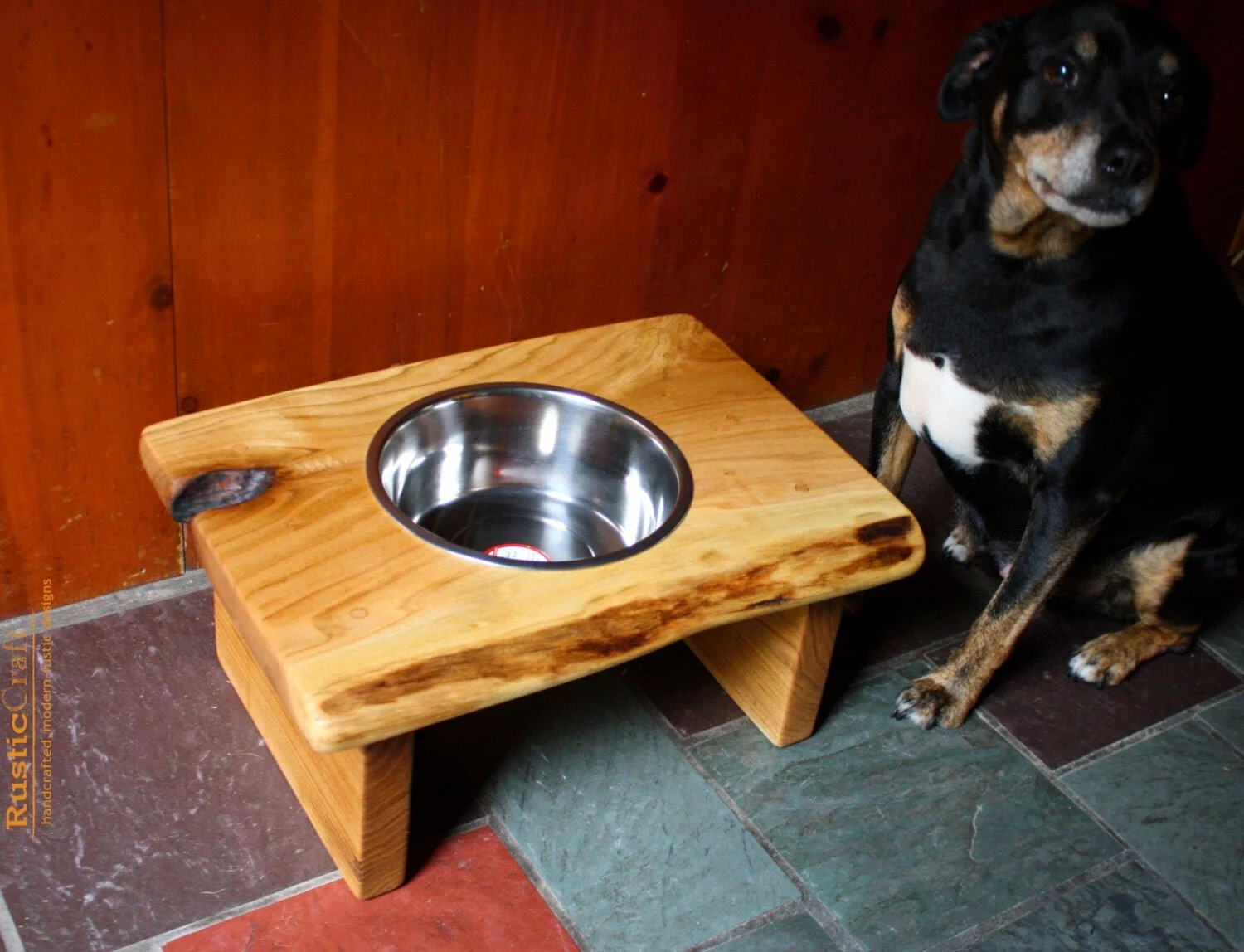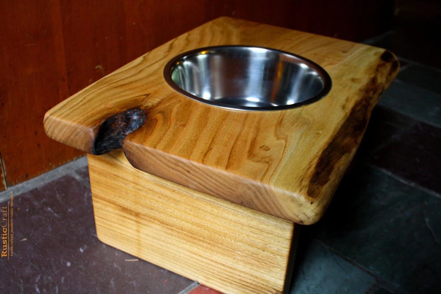 Dog Feeder- Rustic Elevated Single Bowl - Premium Hardwood - Personalized Pet Bowl -Raised Pet Feeder