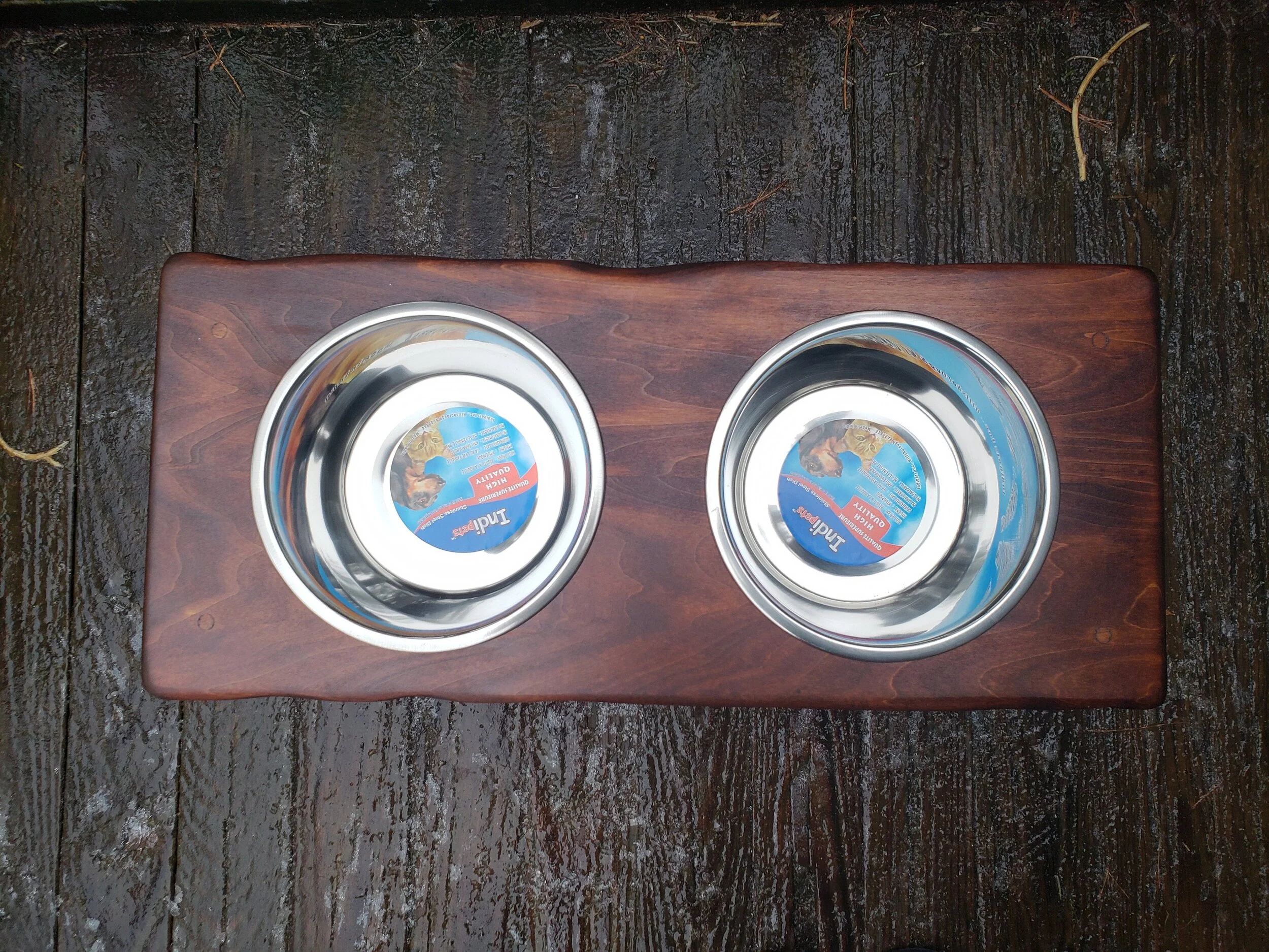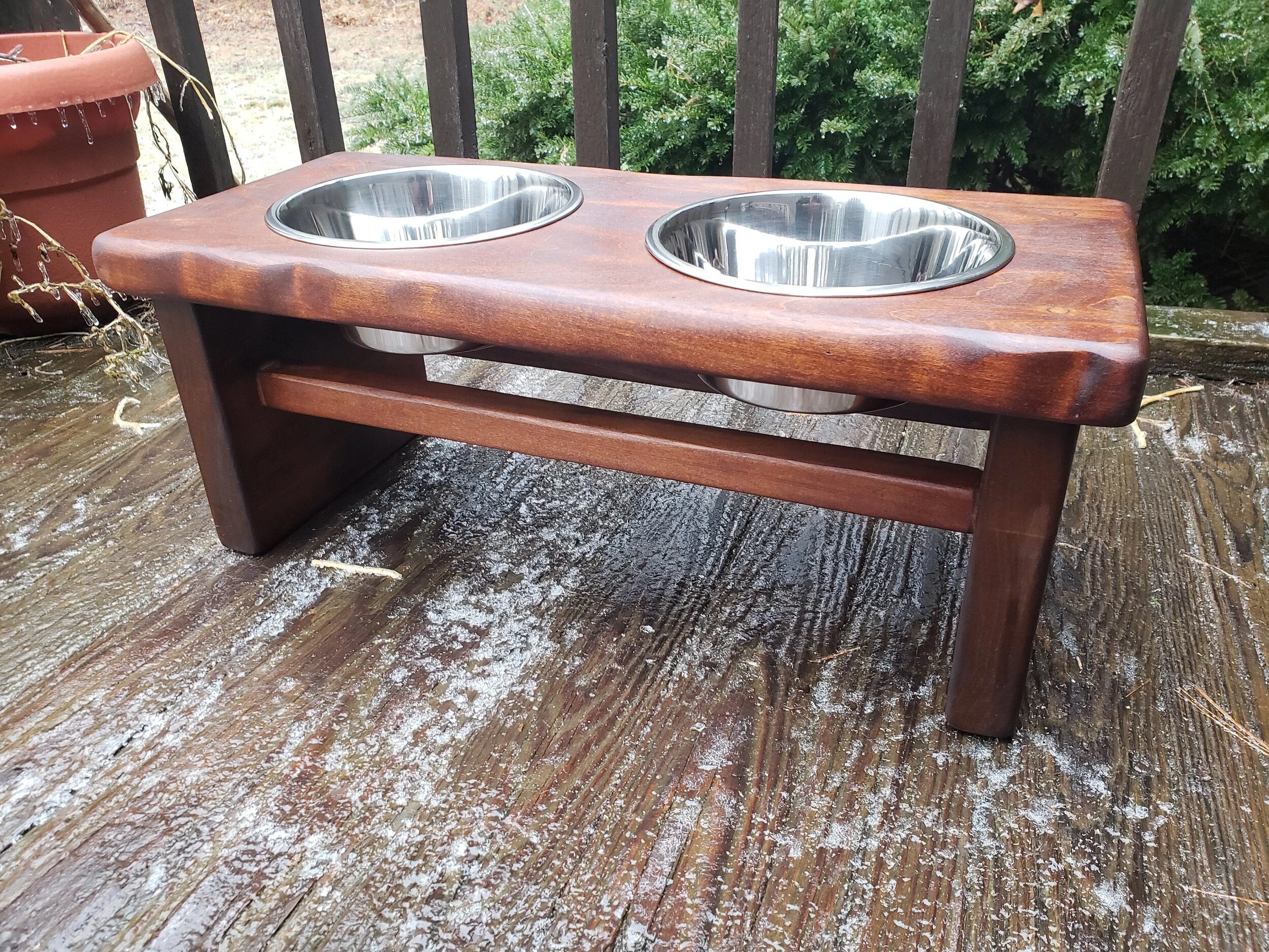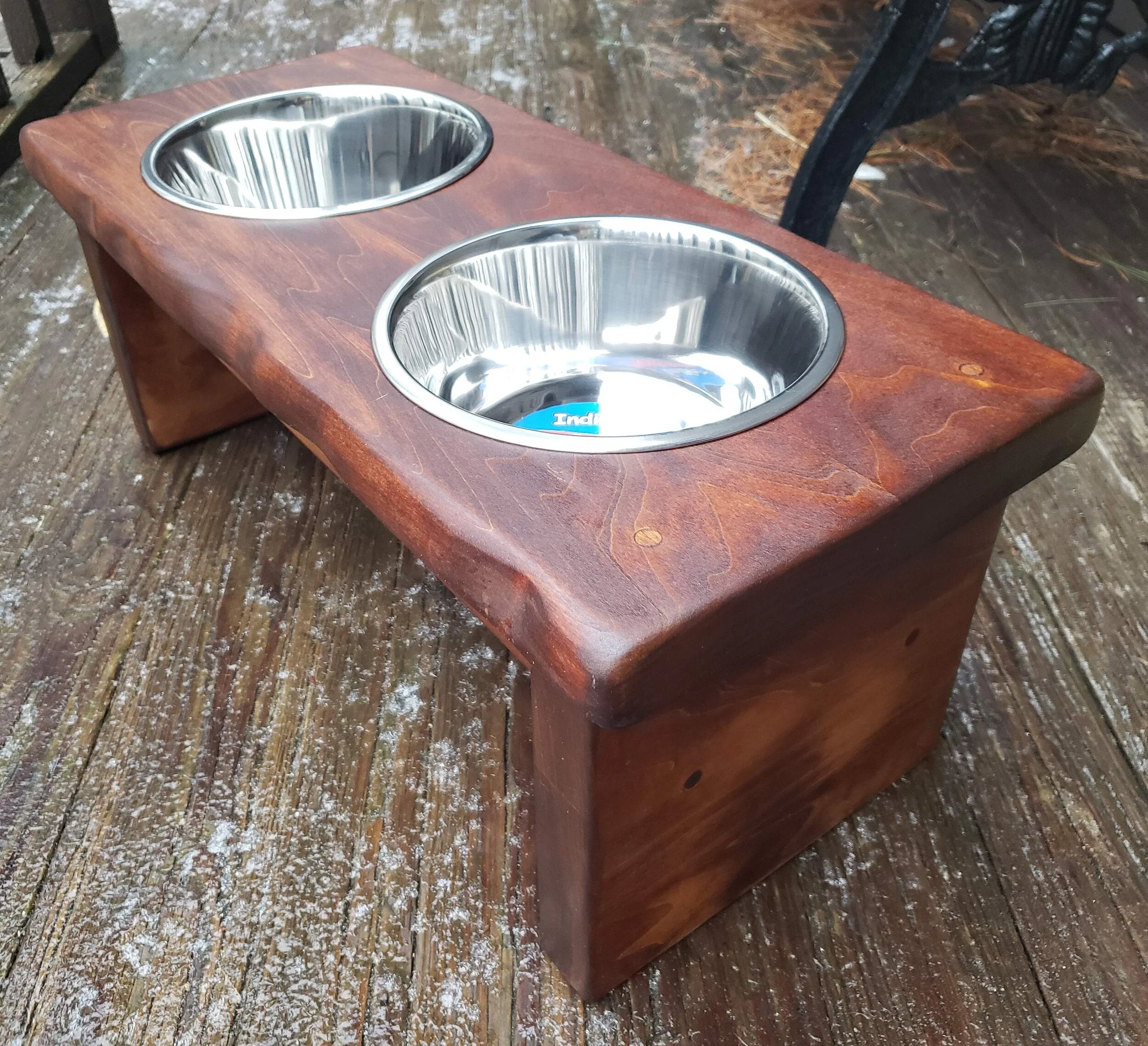 Personalized Wood Dog Feeder -Mocha Stained Poplar Elevated Pet Feeder with Stainless Steel Bowls Included - Made to Order