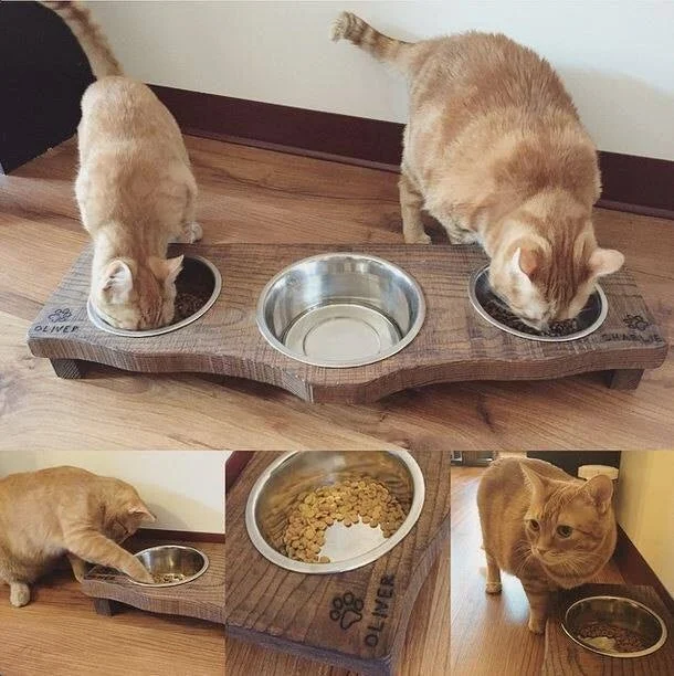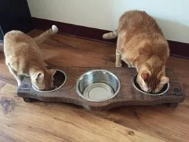 "A HUGE thank you to Sam & Nick! Little Charlie managed to knock over every type of water bowl I got him but we finally have success! Sam was super fast with communication and they were both awesome about making me a custom design purr-fectly sized for my little guys! Although they haven't quite mastered how to eat from their designated sides, we're at least keeping water in the bowl and off the floor now!! "