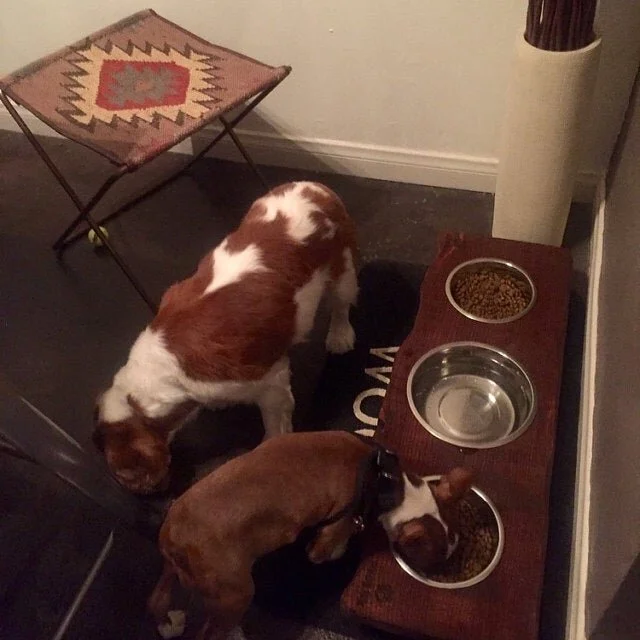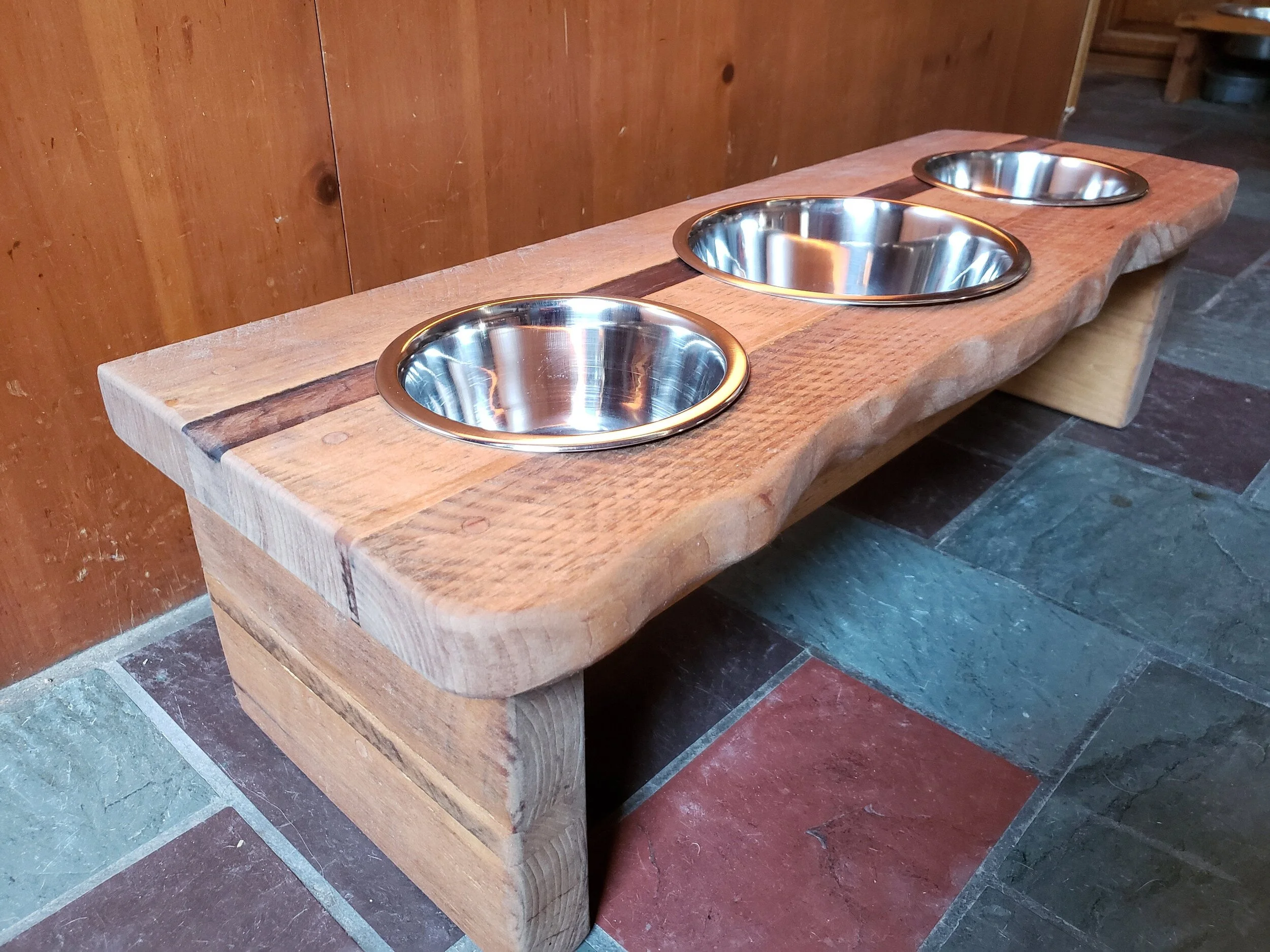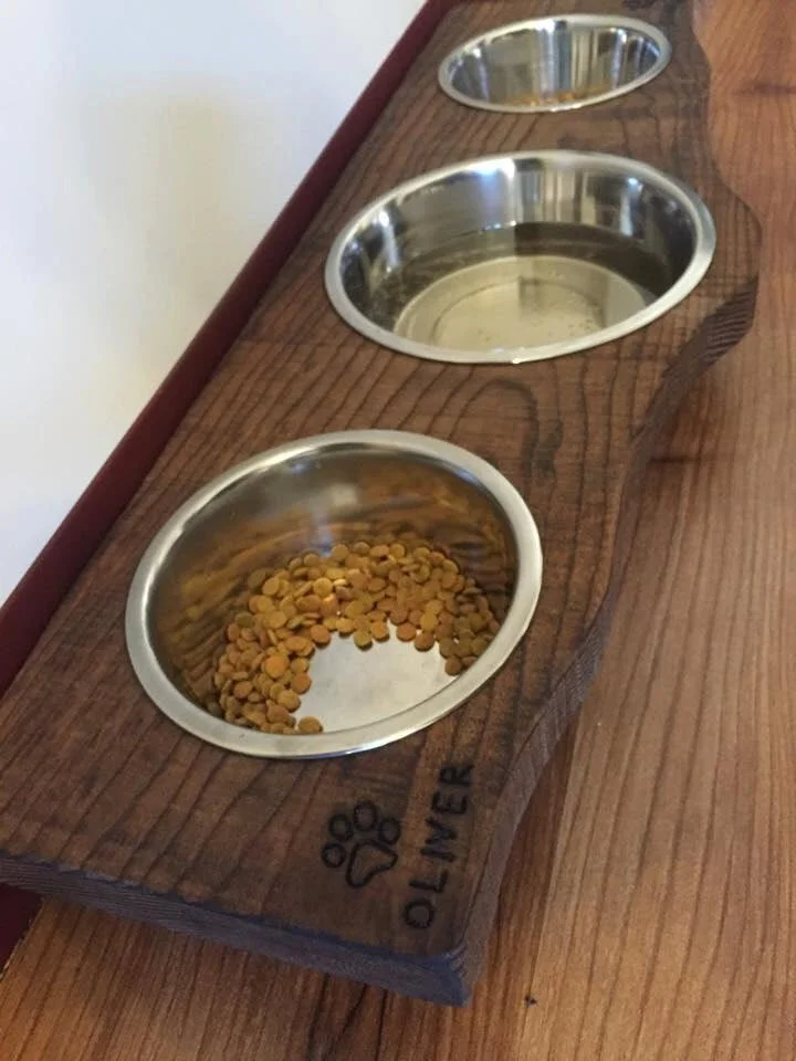 This listing is for 2 or 3 bowl versions of our rustic wood mocha stained pine pet feeders. To see our other styles, click here: