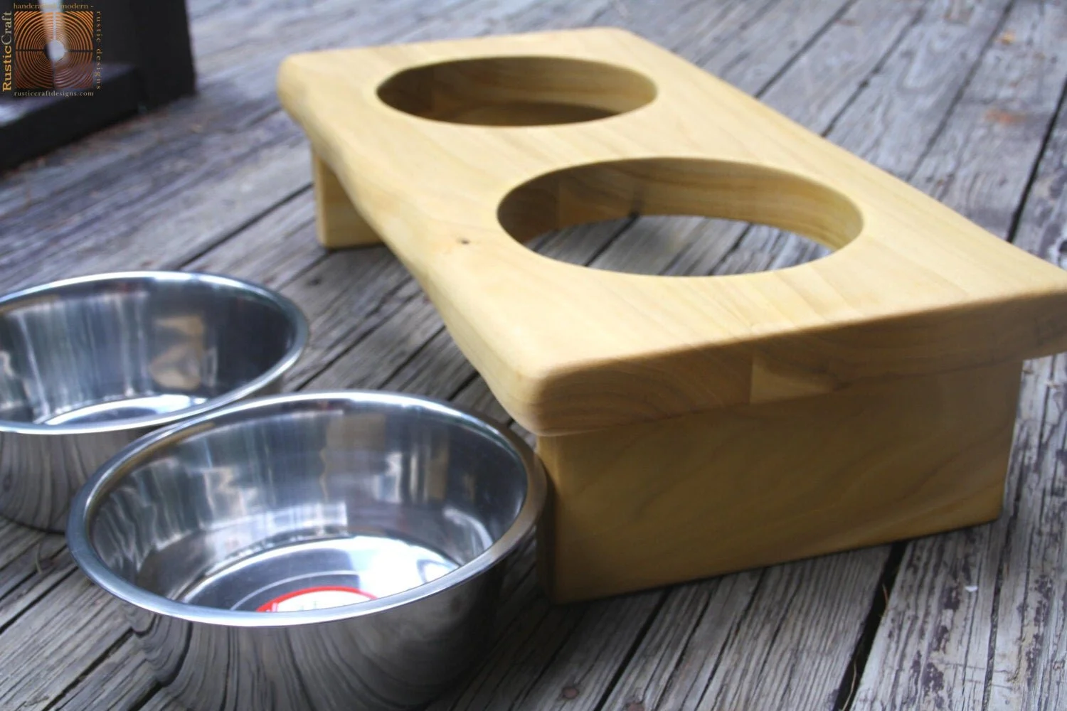 These raised dog and/ or cat feeders are handcrafted by us from solid wood and stained with our own handmade blend of natural coffee based stain. These are available in multiple sizes, with or without hand engraved personalization, in more natural wood style or mocha stained brown (mocha brown stain is standard unless requested otherwise) and comes with stainless steel bowls.
