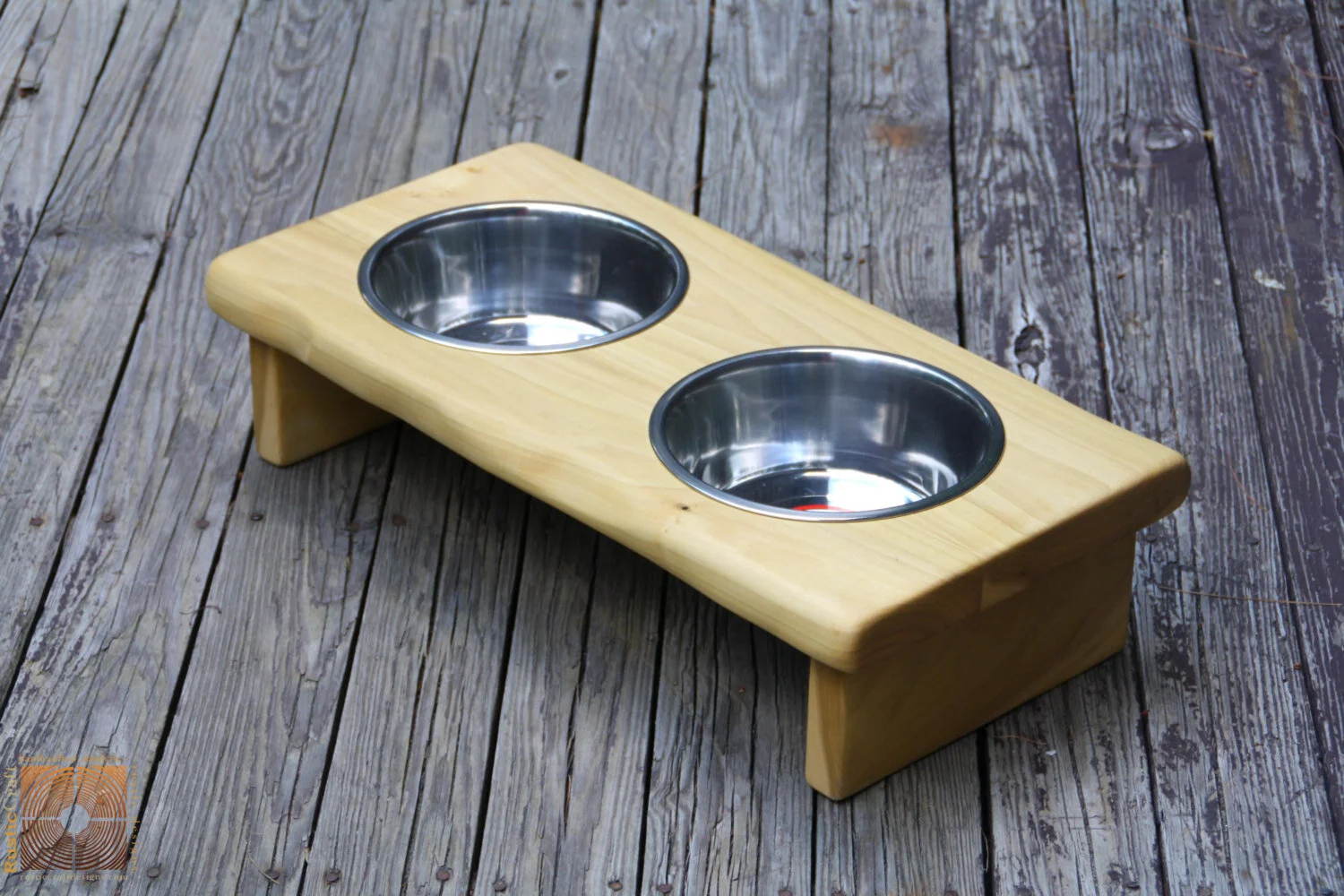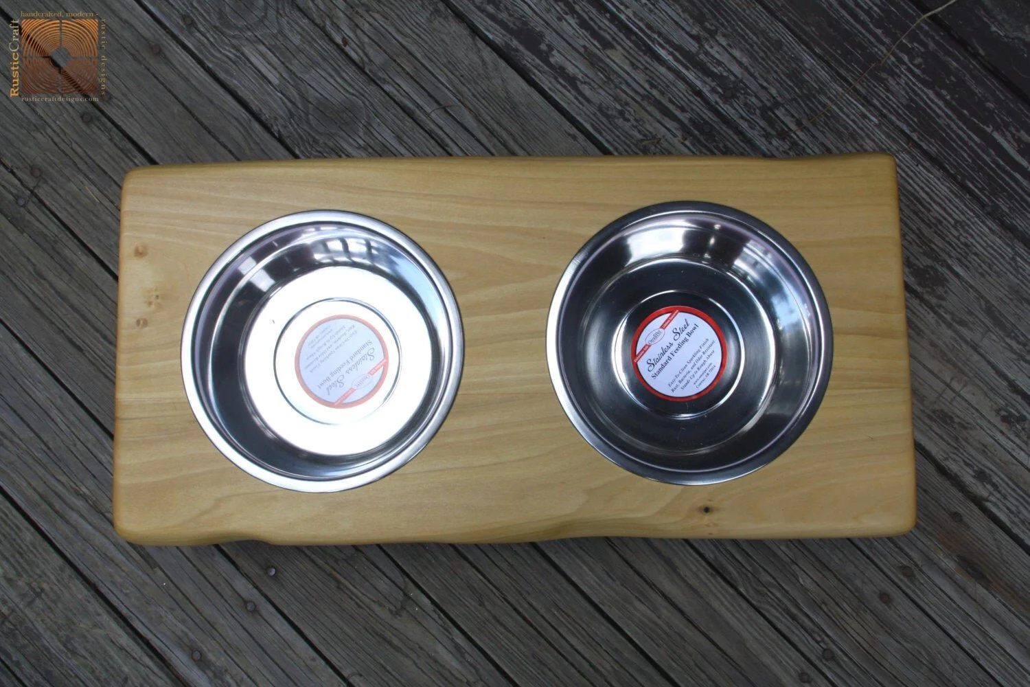 These raised dog and/ or cat feeders are handcrafted by us from solid poplar wood with a hand-rubbed oil finish. These are available in multiple sizes, with or without hand engraved personalization, and comes with stainless steel bowls.