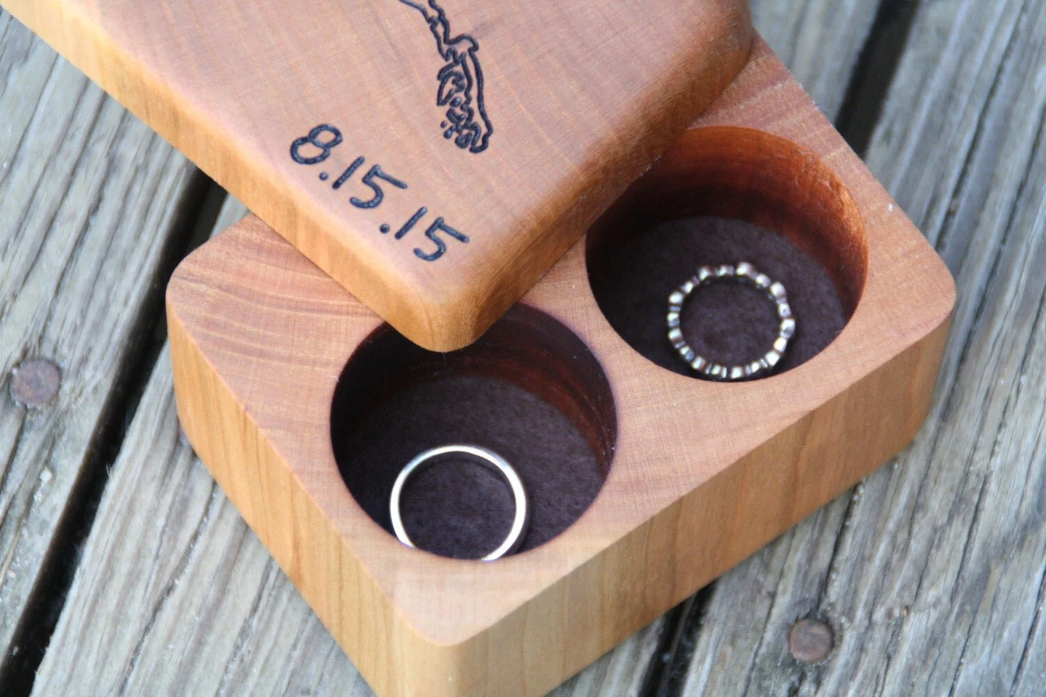 This wood ring box will be finished with our own handcrafted and hand-rubbed, original wax blend of beeswax+oil.
