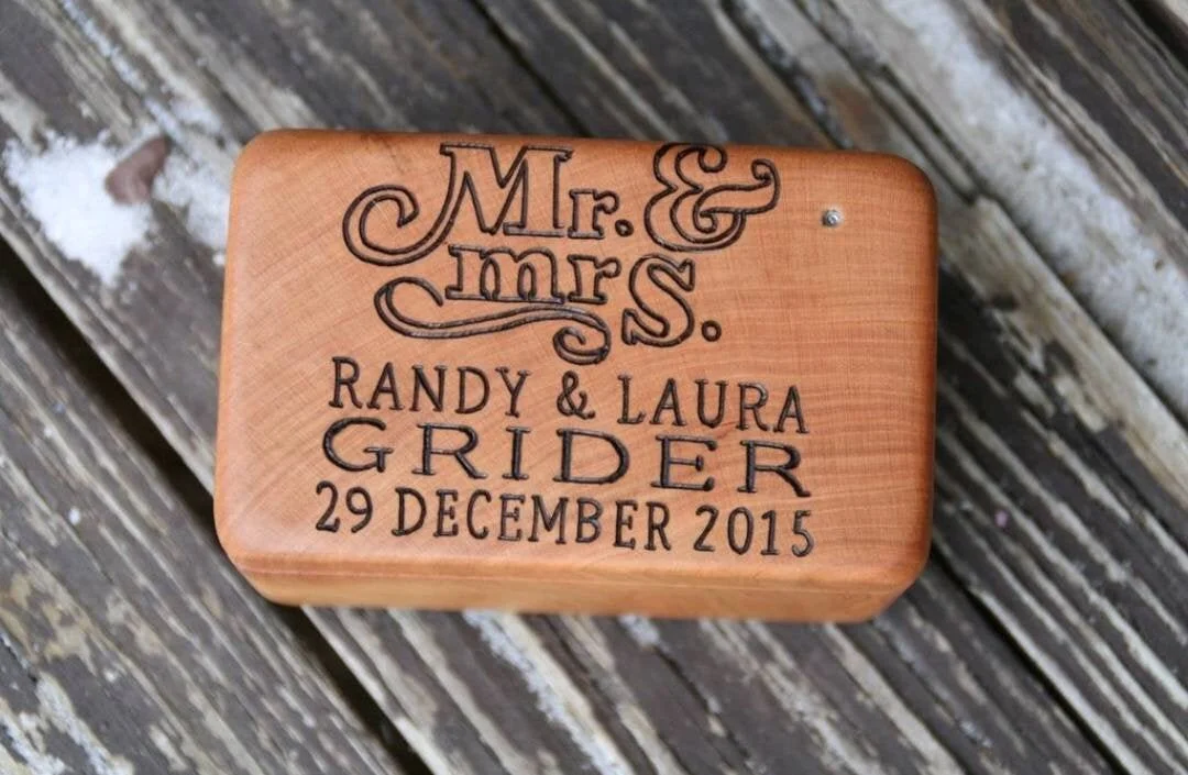 "I ordered the chestnut ring box...it was so perfect for our wedding! The box far exceeded my expectations, and I love that it is a piece I can keep and display. "