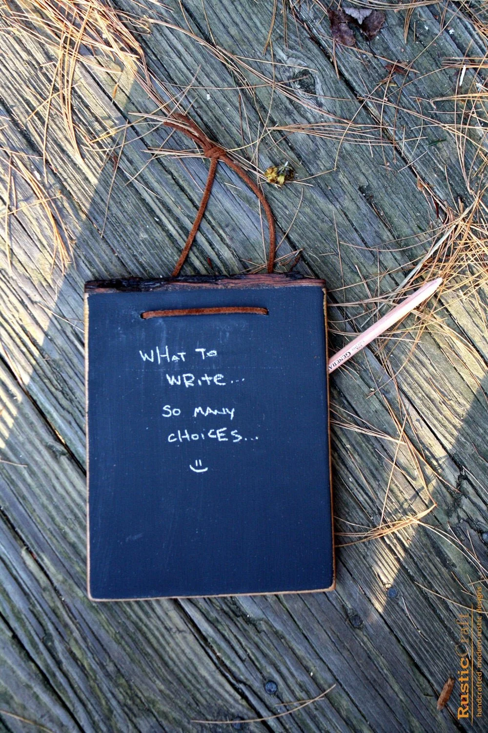 This unique, hardwood chalkboard tablet with leather or jute strap has been crafted from locally salvaged black cherry from Central Massachusetts. A live edge exists along the top edge, and an integral chalk pencil holder keeps your chalk pencil close at hand!
