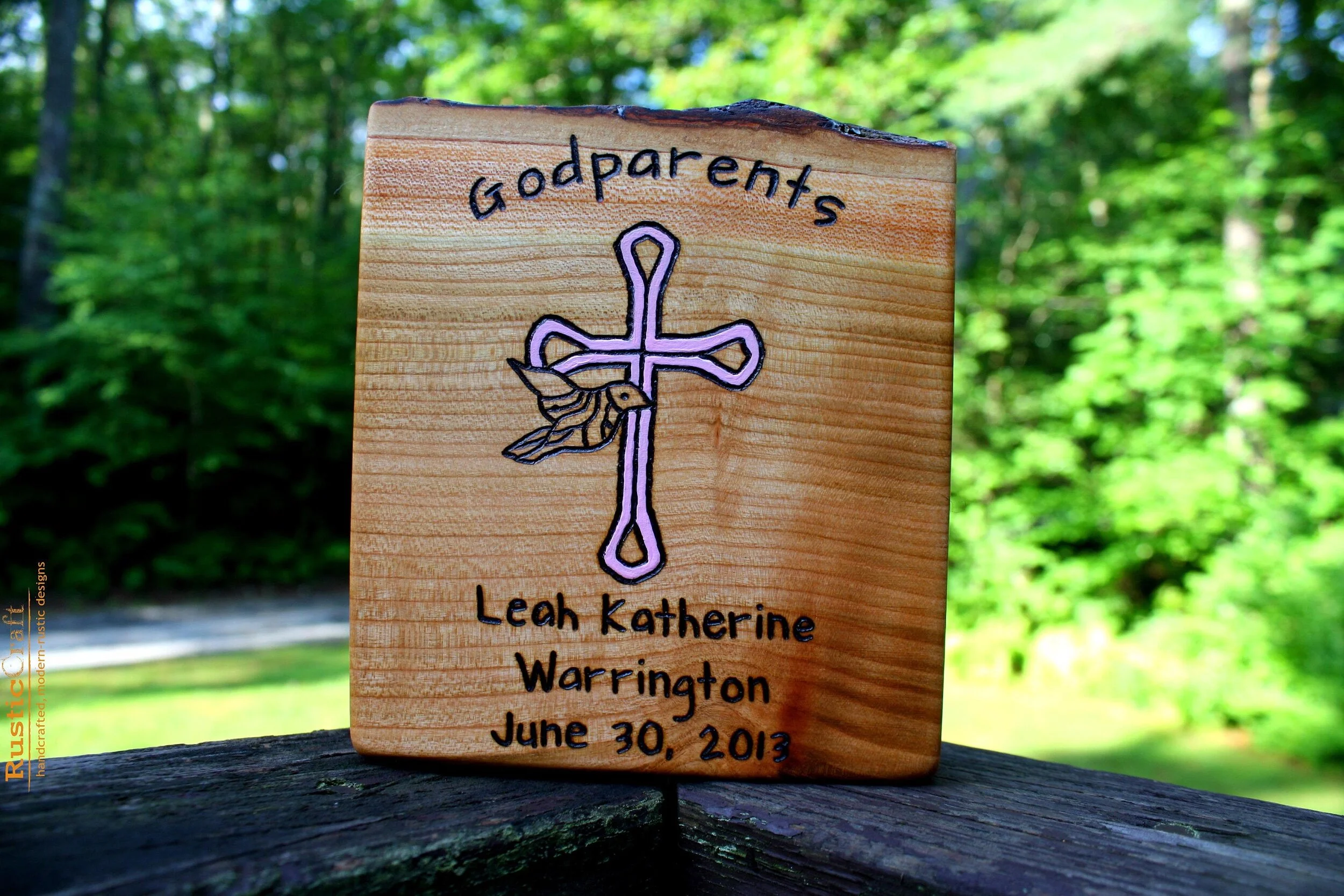 Baptism gift for Godparents- Personalized Gift - Godfather Gift- Rustic Wood Custom Sign - Confirmation Gift - Christening Gift